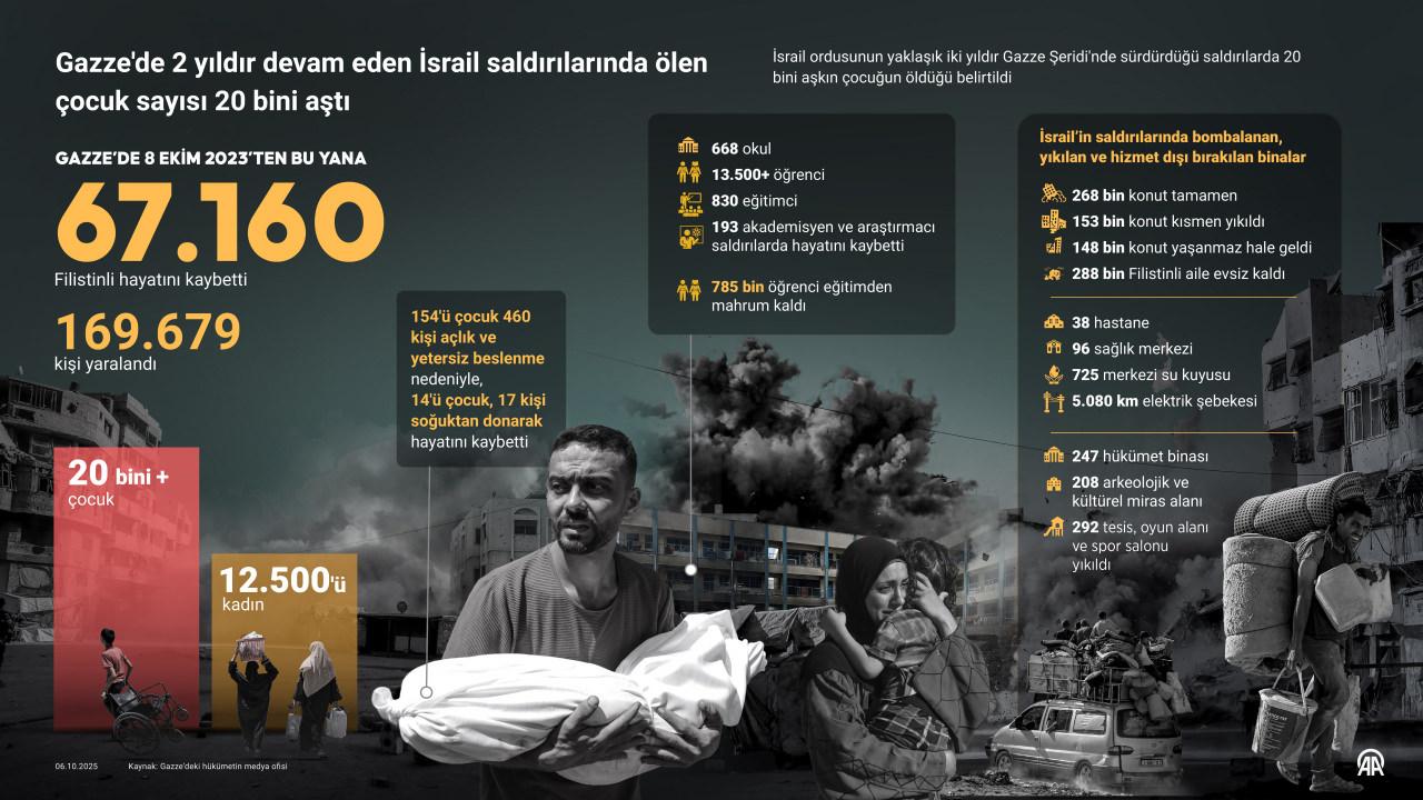 İsrail ordusunun yaklaşık iki yıldır Gazze Şeridi’nde sürdürdüğü saldırılarda 20 bini aşkın çocuğun öldüğü belirtildi.